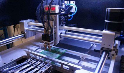 貼片機(jī):又稱“貼裝機(jī)”、“表面貼裝系統(tǒng)”(Surface Mount System),在生產(chǎn)線中,它配置在點(diǎn)膠機(jī)或絲網(wǎng)印刷機(jī)之后,是通過(guò)移動(dòng)貼裝頭把表面貼裝元器件準(zhǔn)確地放置PCB焊盤上的一種設(shè)備。分為手動(dòng)和全自動(dòng)兩種。