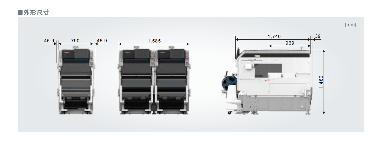 可根據(jù)電路板尺寸以及要搭載的供料器數(shù)量從2種模組中進(jìn)行選擇。